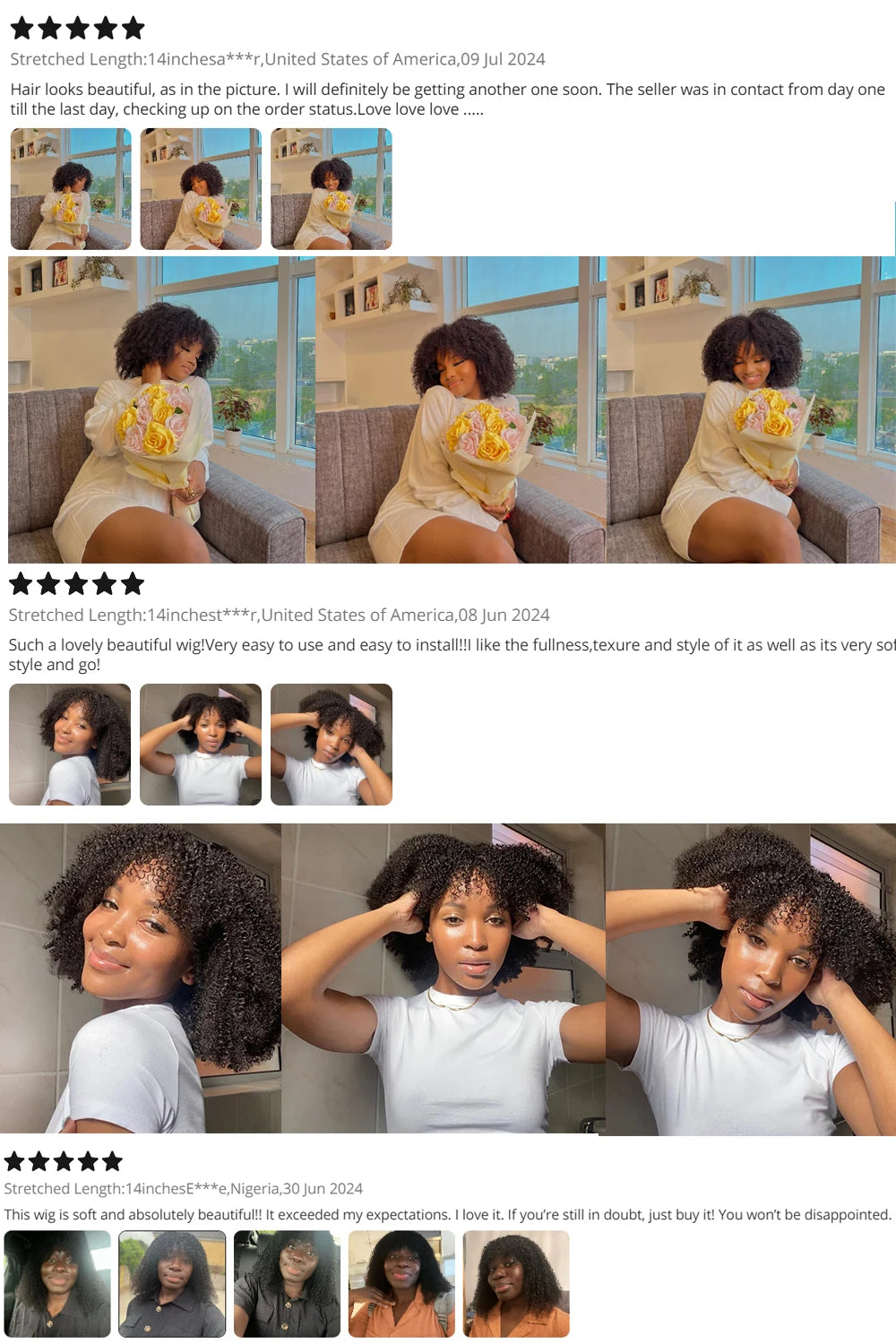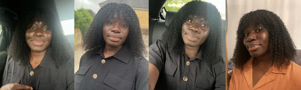 Transforme seu visual com a Peruca Afro Kinky Encaracolada com Franja, feita com 100% cabelo humano Remy brasileiro — macio, volumoso e com movimento real.
